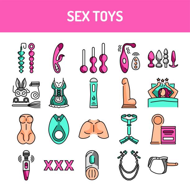 Sex toys line icons set. Isolated vector element. Outline pictograms for web page, mobile app, promo. Editable stroke.